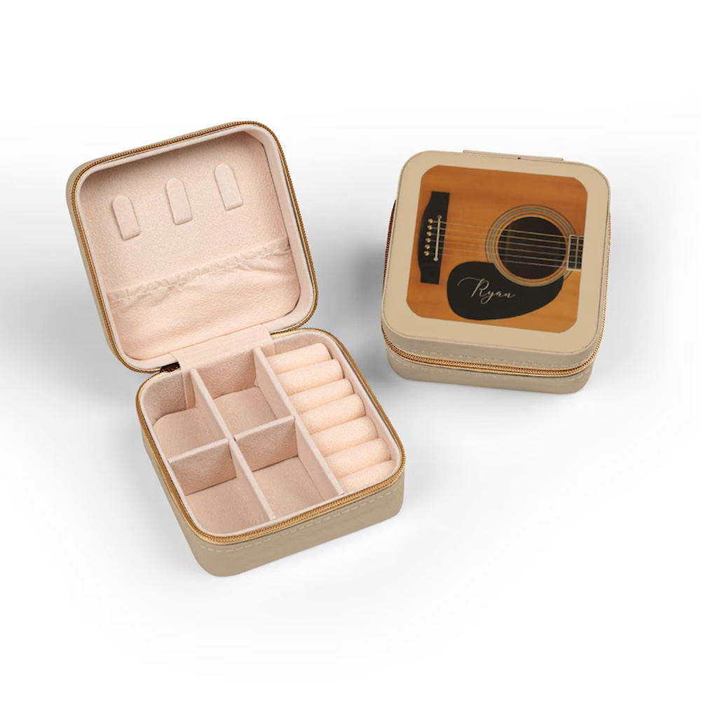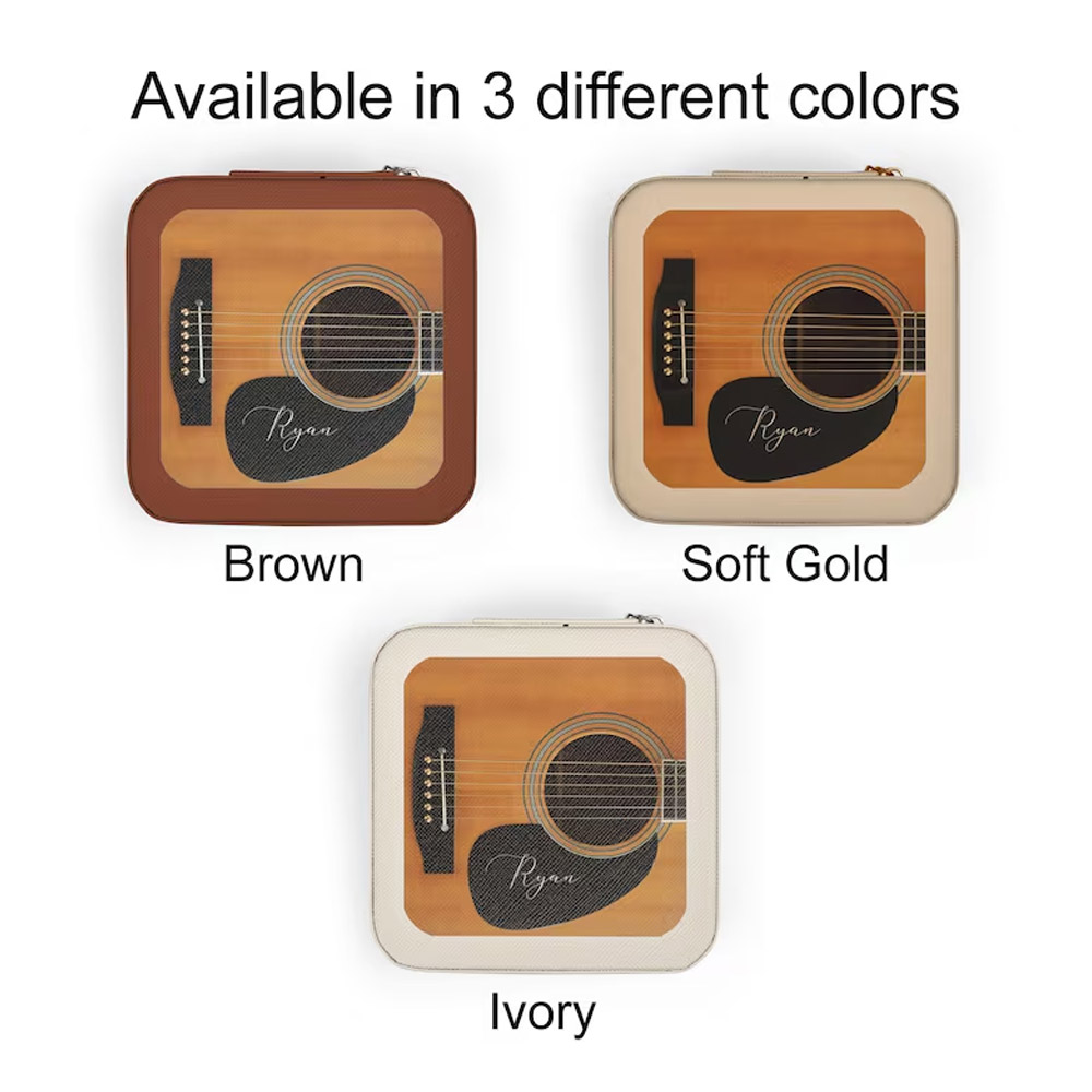 Guitar-Inspired Design – This compact storage case features a stylish printed design of a guitar on the lid, capturing the essence of music and creativity. The elegant finish and detailed strings add a professional, artistic touch that resonates with any guitarist’s passion.