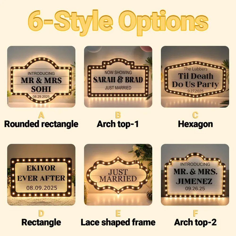 Customizable Text – Personalize the sign with your own message or a special nickname and date. The text can be tailored to reflect your names, wedding date, or unique phrase, making it a one-of-a-kind centerpiece for your celebration.